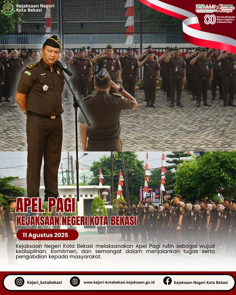 Bertempat di Lapangan Kantor Negeri Kota Bekasi, Seluruh pegawai Kejaksaan Negeri kota Bekasi mengikuti Apel Pagi yang di pimpin oleh Kepala Seksi Pengelolaan Barang Bukti dan Barang Rampasan, Lier Budhi Trapsilo, S.H.