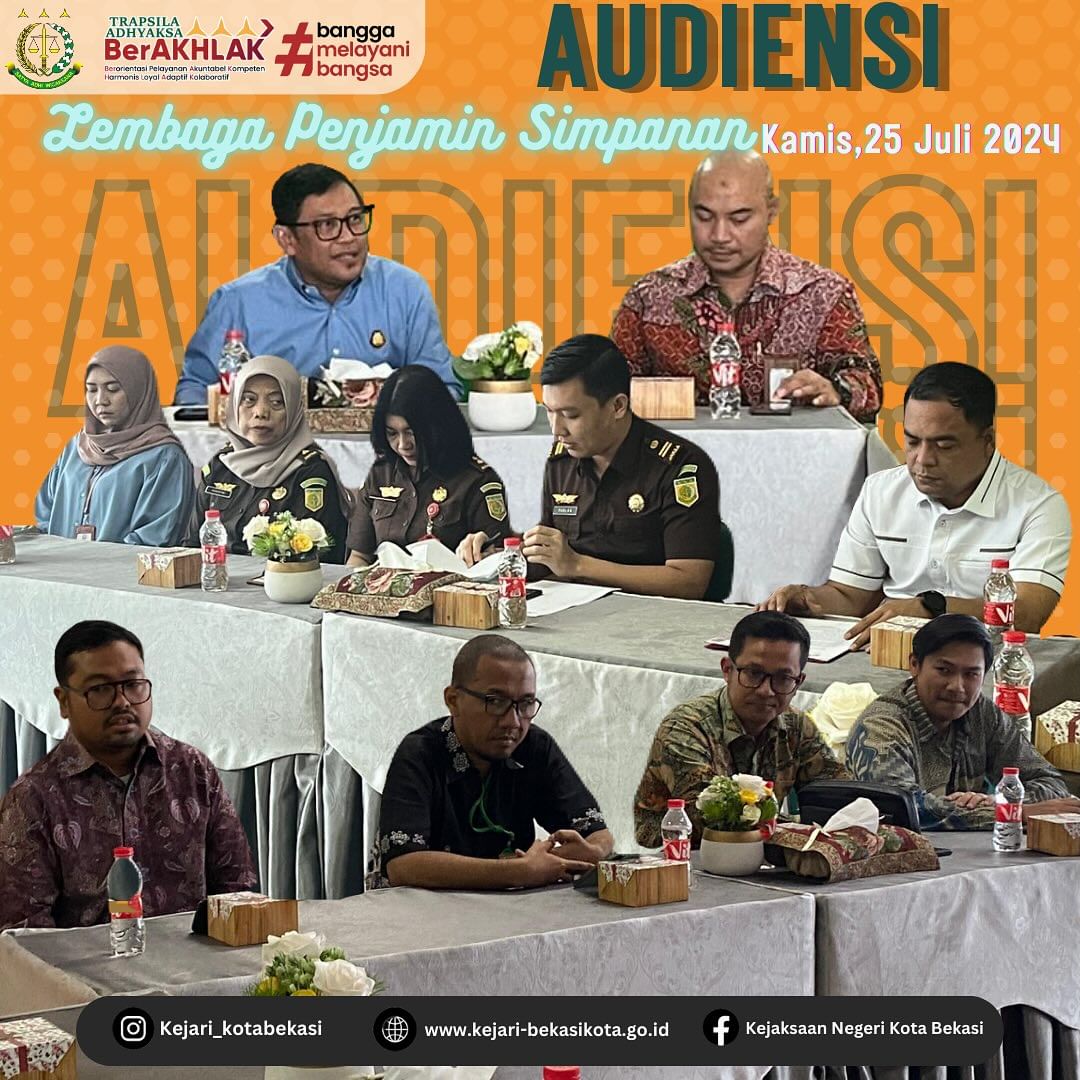 Merupakan audiensi dari Lembaga Penjamin Simpanan (LPS) ke Kejaksaan Negeri Kota Bekasi yang dipimpin langsung oleh Kepala Kejaksaan Negeri Kota Bekasi Imran Yusuf, SH., MH. dan diikuti oleh para Jaksa yang membahas mengenai penanganan perkara.