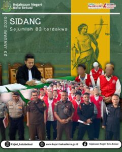 Senin, 20 Januari 2025di Pengadilan Negeri Kota Bekasi Sidang Perkara tindak pidana umum dengan banyak tahanan mencapai 83 terdakwa disidangkan