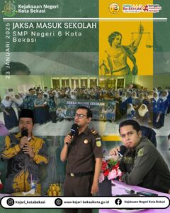Kamis, 23 Januari 2025 di SMP N 06 Bekasi, Kejari Kota Bekasi melaksanakan kegiatan Penyuluhan Hukum Jaksa Masuk Sekolah (JMS)