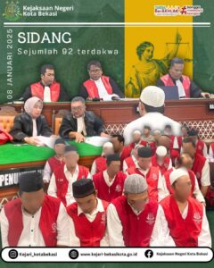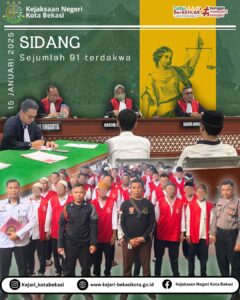 Rabu, 15 Januari 2025di Pengadilan Negeri Kota Bekasi Sidang Perkara tindak pidana umum dengan banyak tahanan mencapai 91 terdakwa disidangkan