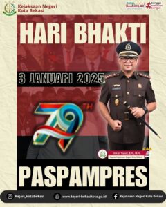 Segenap keluarga besar Kejaksaan Negeri Kota Bekasi mengucapkan Selamat Hari Bhakti Pasukan Pengamanan Presiden Republik Indonesia Ke-79. “03 Januari 2025”