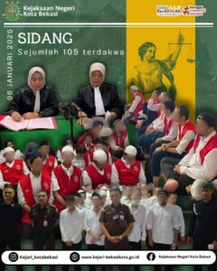 Senin, 06 Januari 2025di Pengadilan Negeri Kota Bekasi Sidang Perkara tindak pidana umum dengan banyak tahanan mencapai 105 terdakwa disidangkan
