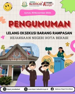 Kejaksaan Negeri Kota Bekasi bersama dengan KPKNL Bekasi melaksanakan Penetapan Pemenang Lelang Barang Eksekusi pada hari Jumat, 22 November 2024