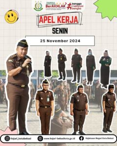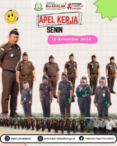 Senin, 18 November 2024Bertempat di Kantor Kejaksaan Negeri Kota Bekasi Apel Kerja dipimpin oleh Kepala Seksi PAPBB Lier Budhi Trapsilo,