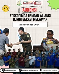 Kamis, 21 November 2024, bertempat di Balai Patriot Pemerintah Kota Bekasi, Kepala Kejaksaan Negeri Kota Bekasi Imran Yusuf, S.H., M.H.