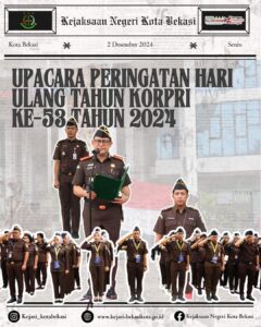 Rabu, tgl 4 Desember 2024, bertempat di Aula Lt.5 Kejaksaan Negeri Kota Bekasi, Kepala Kejaksaan Negeri Kota Bekasi Imran Yusuf,