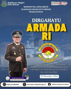 Segenap keluarga besar Kejaksaan Negeri Kota Bekasi mengucapkan Dirgahayu Armada Republik Indonesia. 05 Desember 1945 – 05 Desember 2024. “Dengan