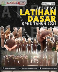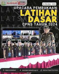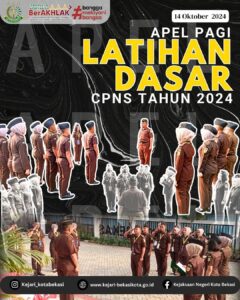 Sabtu, 19 Oktober 2024, telah dilaksanakan Pelatihan Dasar CPNS 2024 dengan materi PKTBT dengan Kepala Kejaksaan Negeri Kota Bekasi Imran