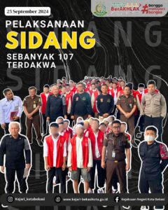 Senin, 23 September 2024di Pengadilan Negeri Kota Bekasi Sidang Perkara tindak pidana umum dengan banyak tahanan mencapai 30 terdakwa disidangkan