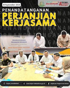 Pada Rabu, 18 September 2024, Bidang Perdata dan Tata Usaha Negara Kejaksaan Negeri Kota Bekasi mengahadiri penandatanganan Perjanjian Kerjasama di