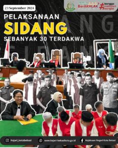 Senin, 23 September 2024di Pengadilan Negeri Kota Bekasi Sidang Perkara tindak pidana umum dengan banyak tahanan mencapai 30 terdakwa disidangkan