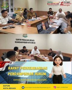 Senin, 30 Juni 2025, Tim Jaksa Pengacara Negara pada Kejaksaan Negeri Kota Bekasi melaksanakan rapat perkembangan pendampingan hukum dengan Dinas