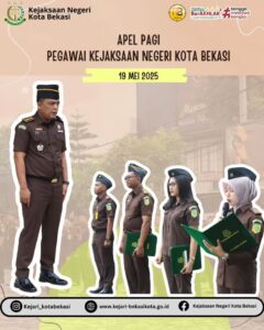 Bertempat di Lapangan Kantor Kejaksaan Negeri Kota Bekasi, Seluruh pegawai Kejaksaan Negeri kota Bekasi mengikuti Apel Pagi yang di pimpin