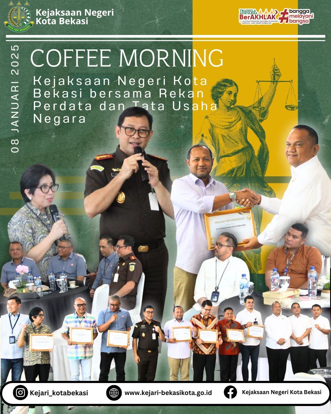 Rabu, 08 Januari 2025, bertempat di Aula Lt.5 Kejaksan Negeri Kota Bekasi, Kepala Kejaksaan Negeri Kota Bekasi Imran Yusuf, S.H., M.H. beserta jajaran menggelar kegiatan Coffee Morning bersama: