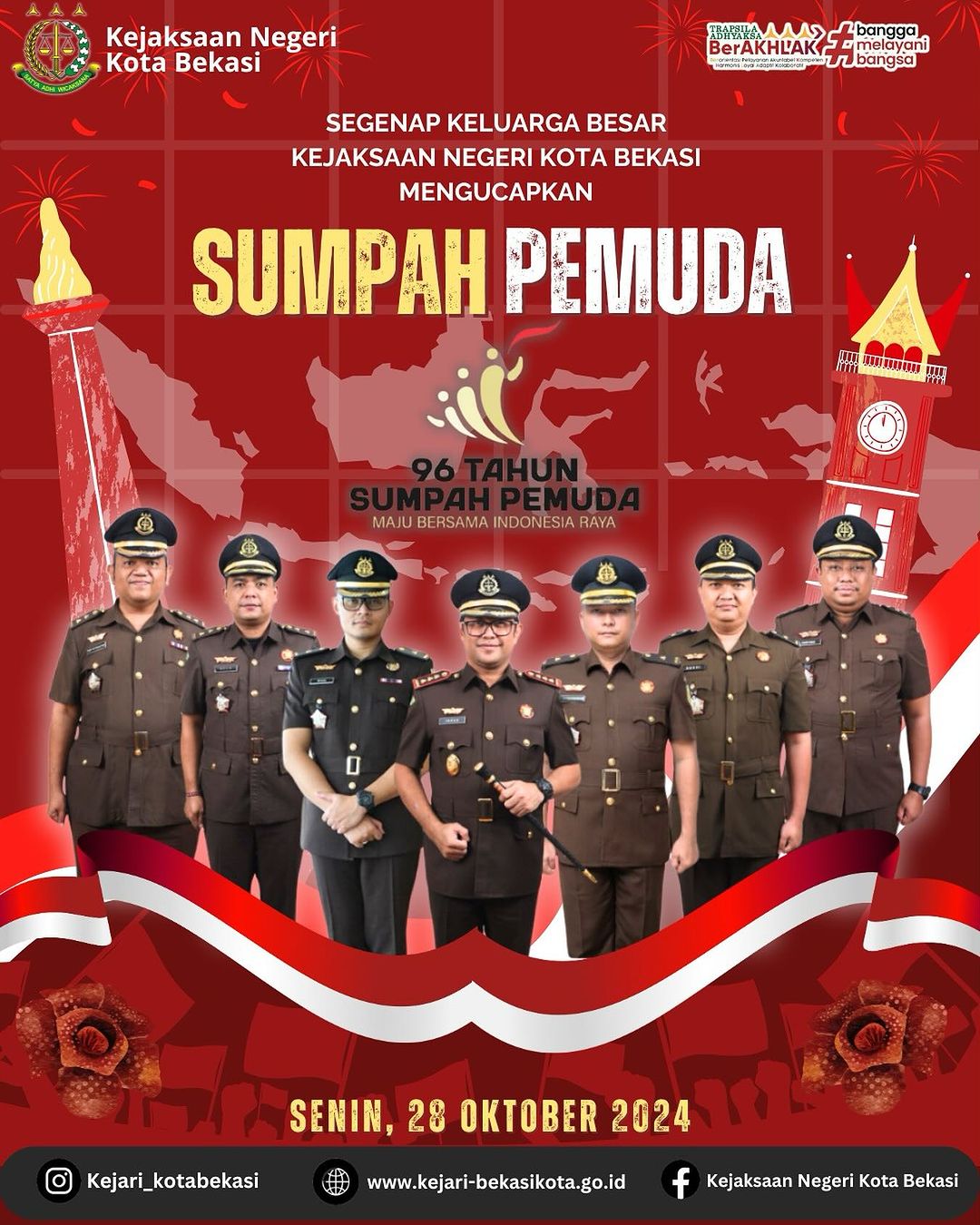 Keluarga Besar Kejaksaan Negeri Kota Bekasi mengucapkan Selamat Hari Sumpah Pemuda, 28 Oktober 2024.