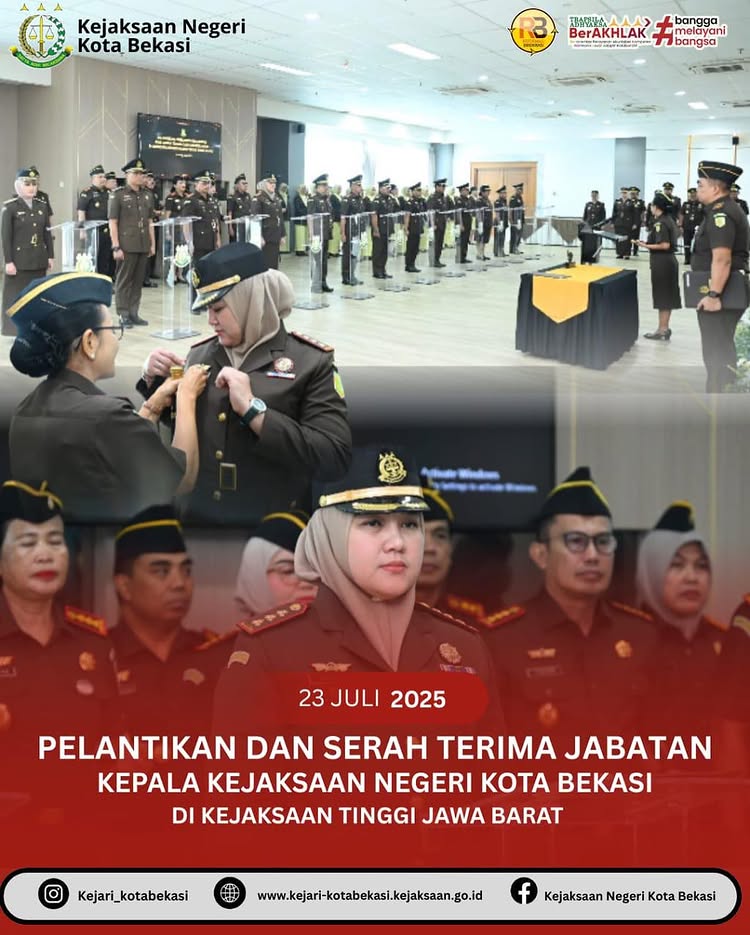 Selamat dan sukses atas pelantikan serta serah terima jabatan kepada Ibu Dr. Sulvia Triana Hapsari, S.H., M.Hum. sebagai Kepala Kejaksaan Negeri Kota Bekasi.