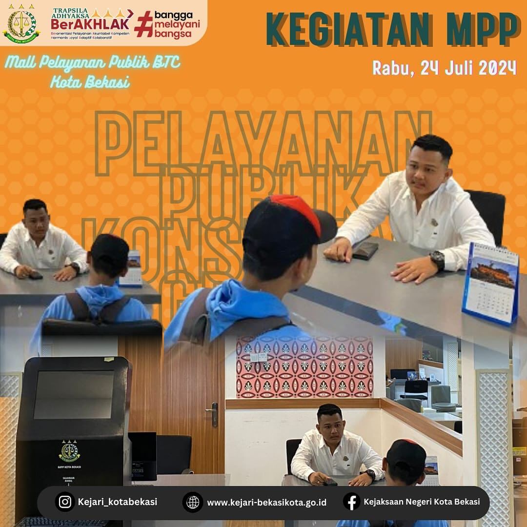 Kegiatan Pelayanan Hukum Gratis dengan Jaksa M. Bagas Anggit Prakoso, SH. dan Staf bidang Perdata dan Tata Usaha Negara Theresia Paskalita Trisnawati. Masyarakat yang datang berkonsultasi dengan jaksa yang bertugas berkaitan mengenai permasalahan di bidang perdata dan tata usaha negara.
