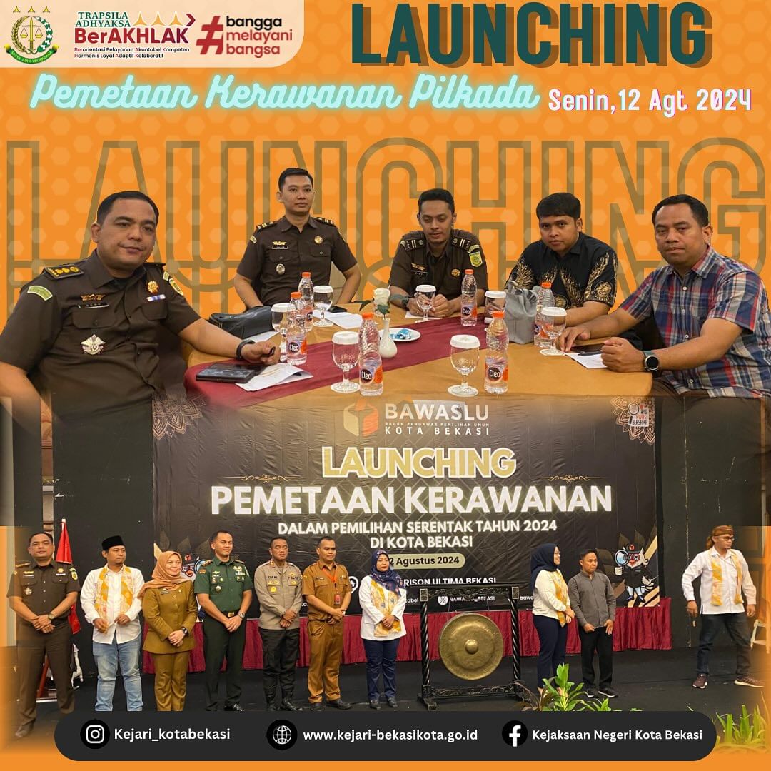 Sehubungan dengan sedang berlangsungnya tahapan pada Pemilihan Gubernur dan Wakil Gubernur, Bupati dan Wakil Bupati serta Walikota dan Wakil Walikota Tahun 2024, maka Badan Pengawas Pemilihan Umum Kota Bekasi mengadakan Launching “Pemetaan Kerawanan Pada Pemilihan Serentak Tahun 2024 di Kota Bekasi” guna sebagai salah satu persiapan untuk menghadapi Pilkada serentak 2024.