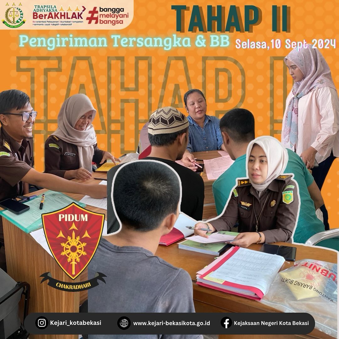 Pada hari Selasa, 10 September 2024 telah dilakukan Tahap II (Pengiriman Tersangka dan Barang Bukti) dari penyidik sebanyak 14 tersangka. Terhadap tersangka dilakukan penahanan oleh Jaksa Penuntut Umum dititipkan ke Rutan Lapas Kelas IIA Bekasi.
