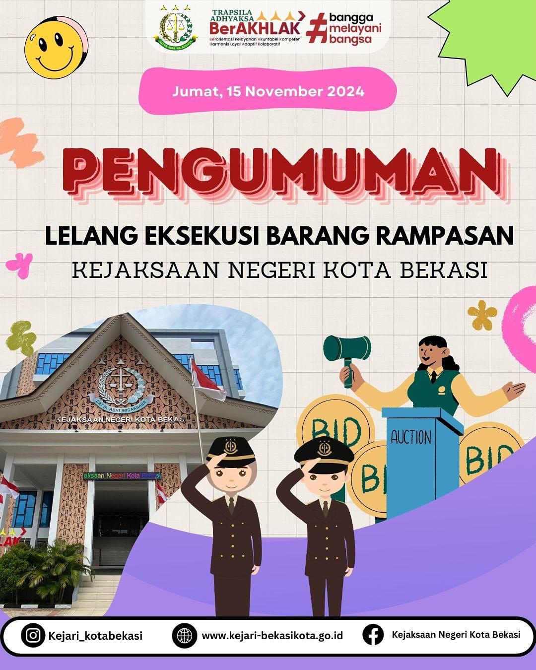 Untuk informasi lebih lanjut bisa silahkan kunjungi website Portal.lelang.go.id dan/atau lelang.go.id atau dapat menghubungi Kejaksaan Negeri Kota Bekasi melalui Whtasapp di nomor 0851-5627-8072 (Adel) dapat menghubungi KPKNL Bekasi (021) 8808888.