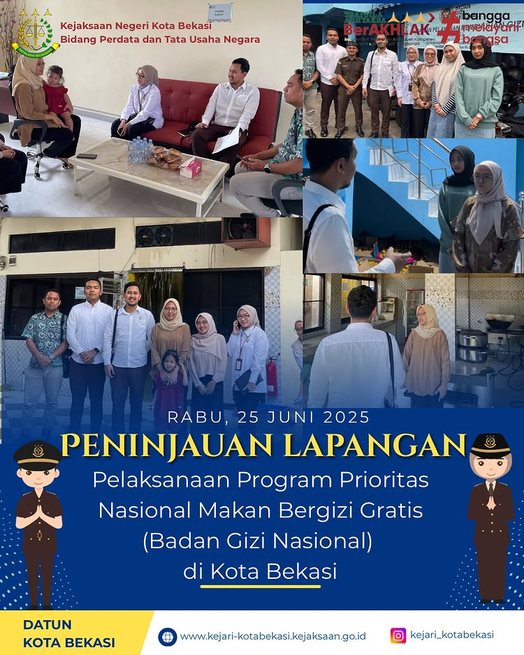 Rabu, 25 Juni 2025, Tim Jaksa Pengacara Negara pada Kejaksaan Negeri Kota Bekasi melaksanakan Pendampingan dan Peninjauan Lapangan dalam rangka Rencana Aksi (Renaksi) Program Makan Bergizi Gratis di 2 SPPG (Satuan Pelayanan Pemenuhan Gizi) yang berada di Kota Bekasi