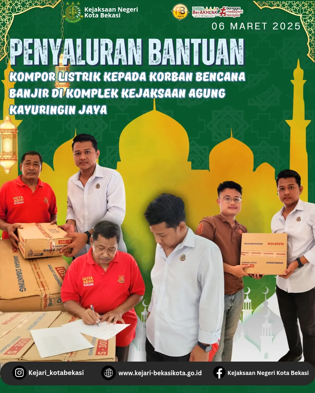 Kamis, 06 Maret 2025, bertempat di Komplek Kejaksaan Agung Kelurahan Kayuringin Jaya, telah dilaksanakan penyaluran bantuan berupa kompor listrik sejumlah 72 unit kepasa warga terdampak yang pada penerimaannya diwakili oleh ketua RW setempat.