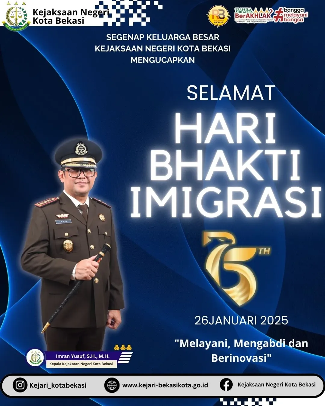 Segenap keluarga besar Kejaksaan Negeri Kota Bekasi mengucapkan Selamat Hari Bhakti Imigrasi Ke-75.