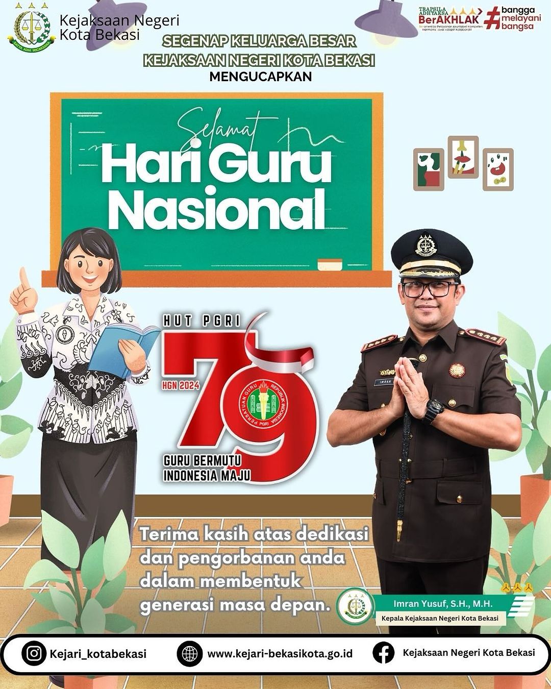Segenap keluarga besar Kejaksaan Negeri Kota Bekasi mengucapkan Selamat Hari Guru Nasional, 25 November 2024.