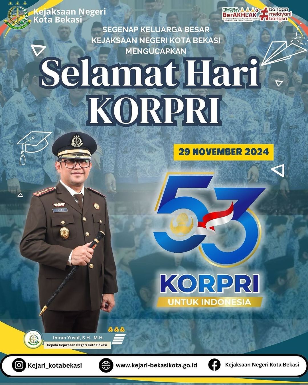 Segenap keluarga besar Kejaksaan Negeri Kota Bekasi mengucapkan Selamat Hari Korpri ke 53.