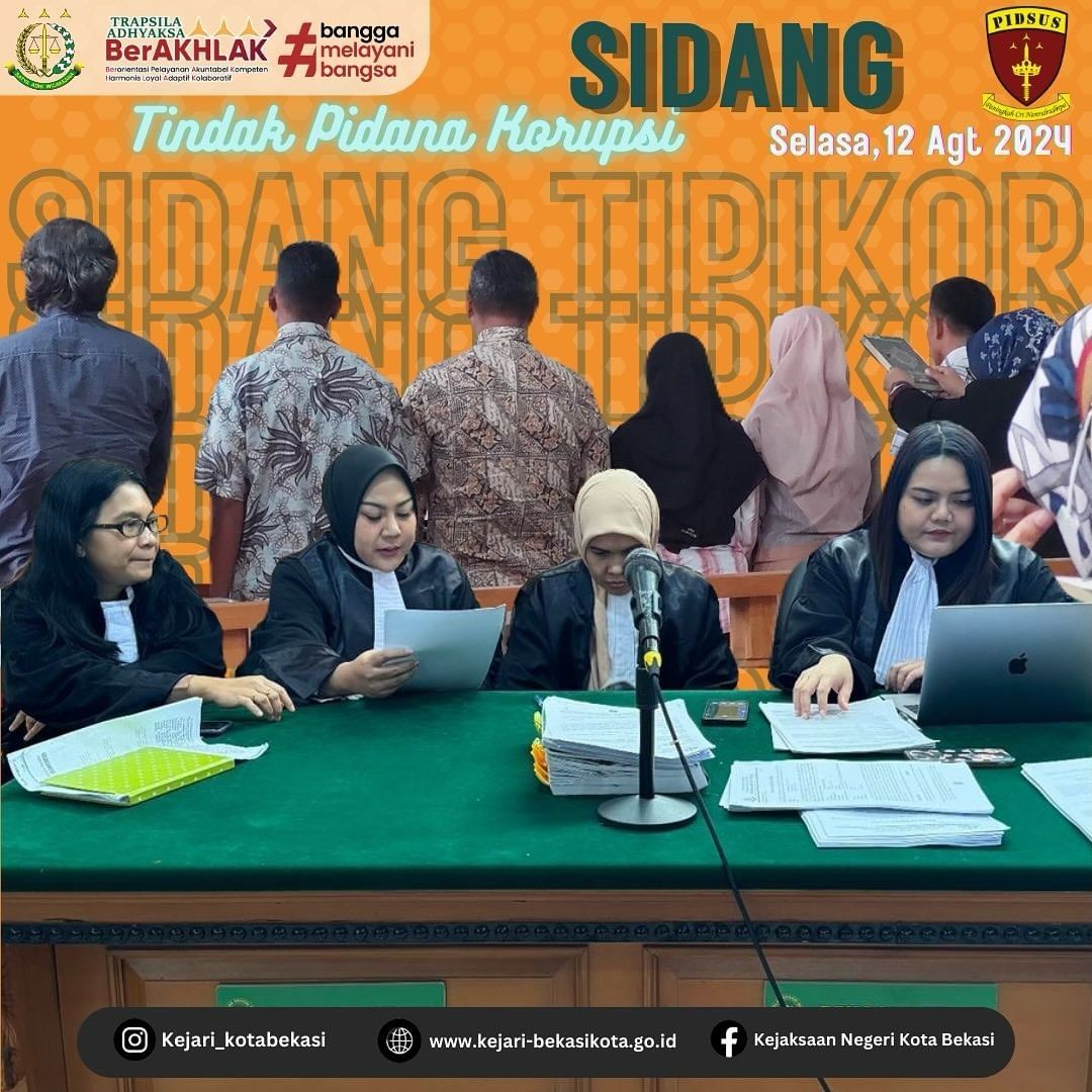 Tim Seksi Tindak Pidana Khusus Kejaksaan Negeri Kota Bekasi melaksanakan sidang Lanjutan Tindak Pidana Korupsi Pengadaan Excavator Standard dan Bulldozer pada Dinas Lingkungan Hidup Kota Bekasi pada tanggal 12 Agustus 2024 dengan agenda pemeriksaan saksi dan ahli yang berlangsung di Pengadilan Negeri Kelas I A Bandung.