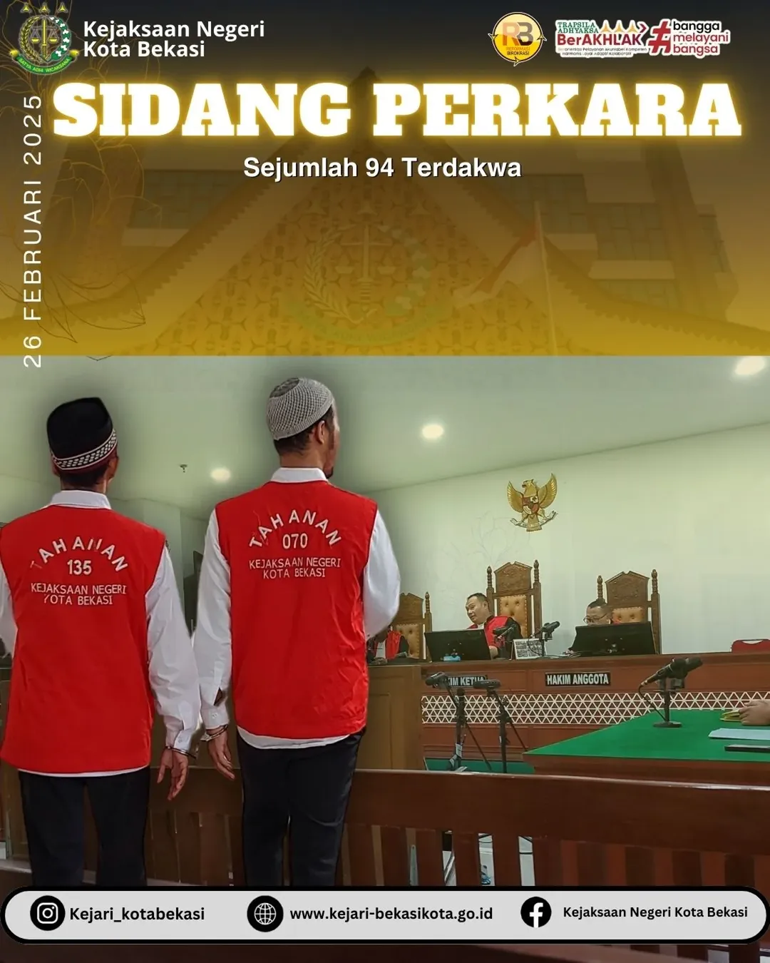 Jadwal Sidang Tindak Perkara Pidana Umum pada Pengadilan Negeri Kota Bekasi pada tanggal 26 Februari 2025.