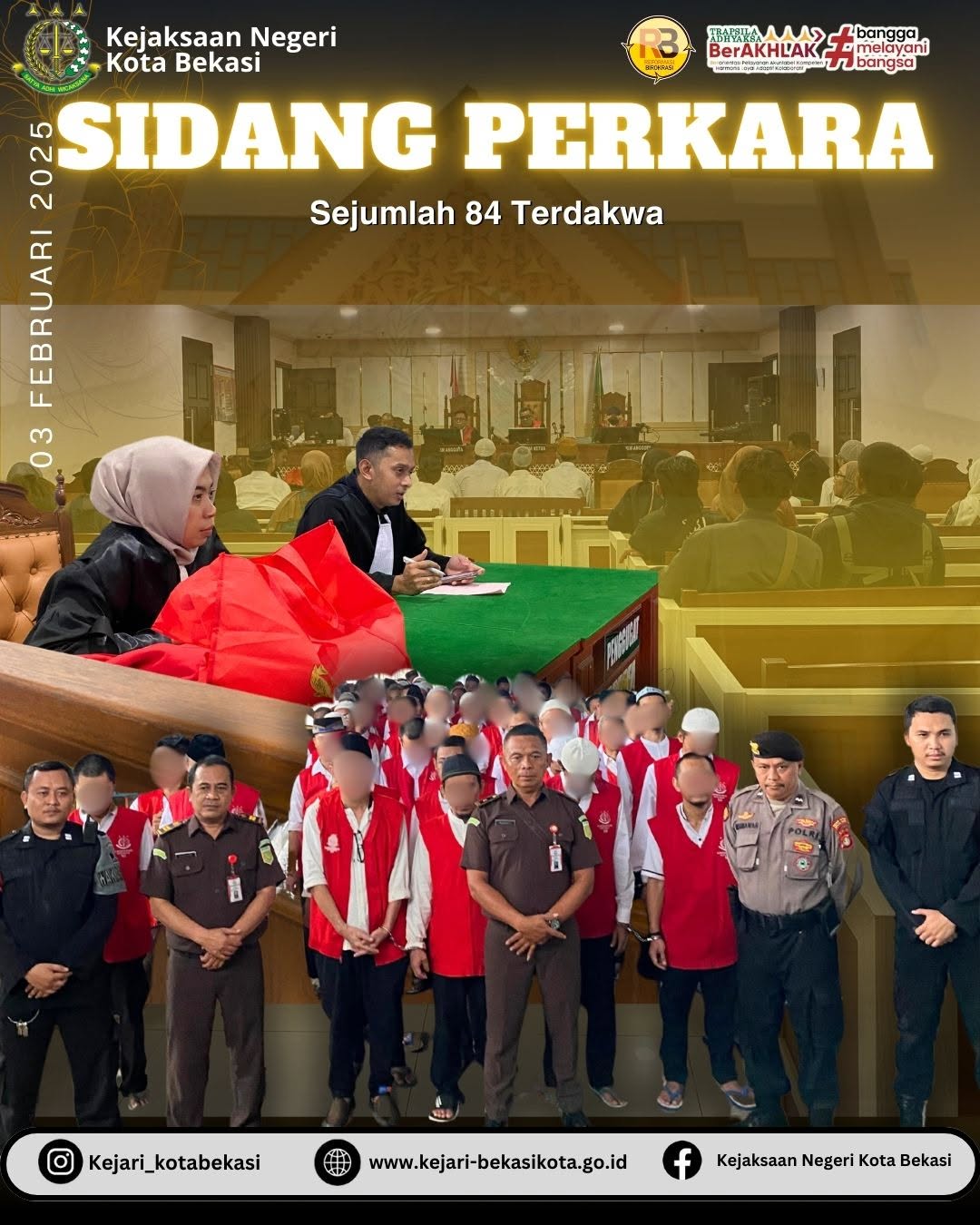 Sidang Perkara tindak pidana umum dengan banyak tahanan mencapai 84 terdakwa disidangkan hari ini. Dari 84 terdakwa terdapat berbagai macam perkara mulai dari pencurian, narkoba, serta tindak pidana lainnya.