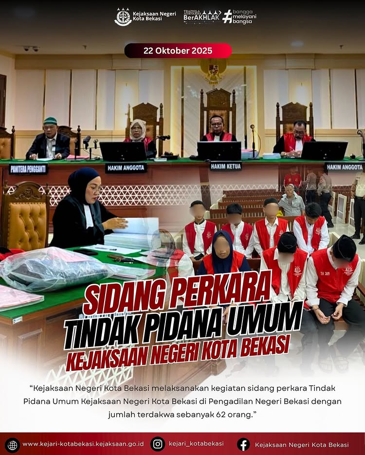 Kejaksaan Negeri Kota Bekasi melaksanakan kegiatan sidang perkara Tindak Pidana Umum di Pengadilan Negeri Bekasi.