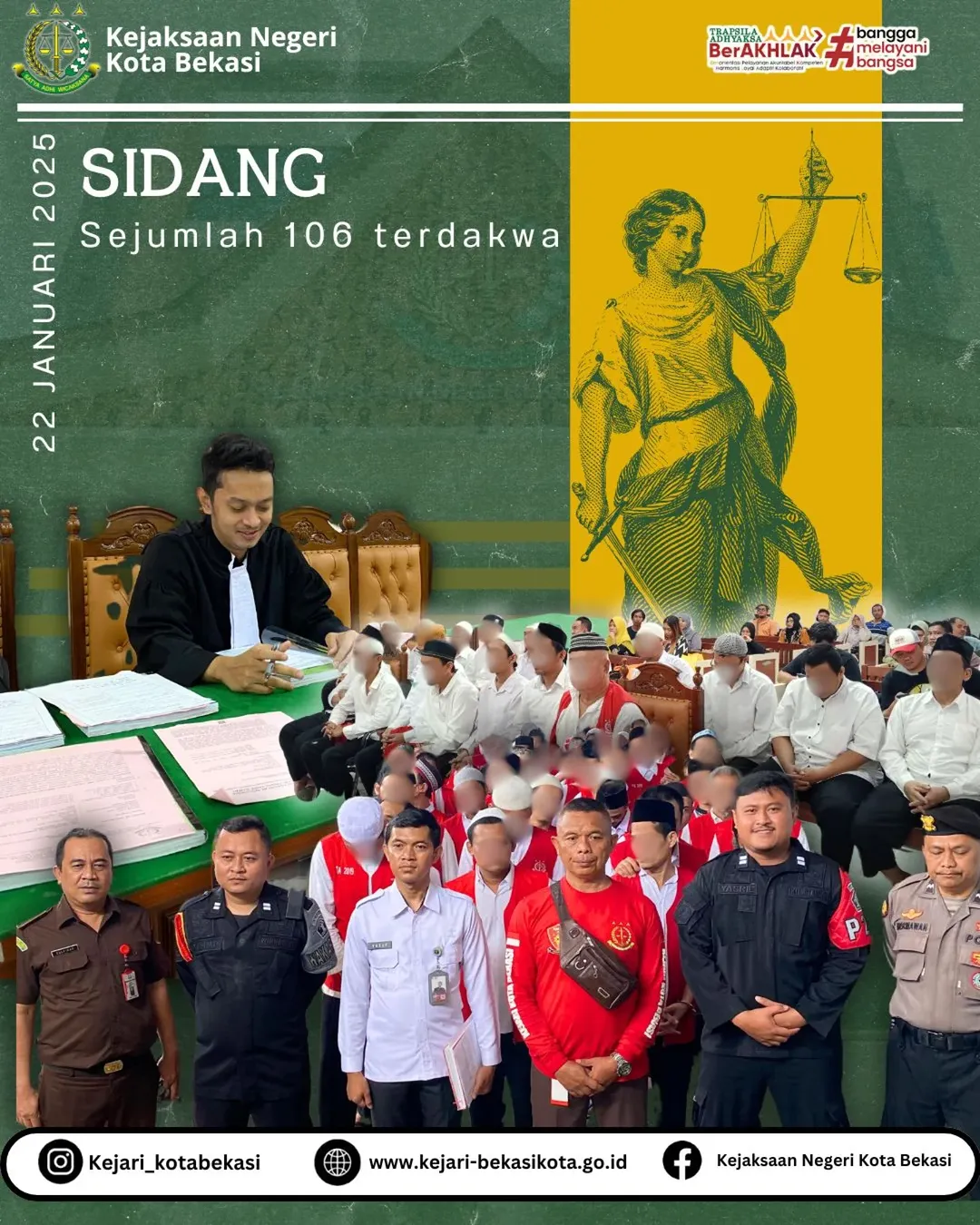 Sidang Perkara tindak pidana umum dengan banyak tahanan mencapai 106 terdakwa disidangkan hari ini. Dari 106 terdakwa terdapat berbagai macam perkara mulai dari pencurian, narkoba, serta tindak pidana lainnya.