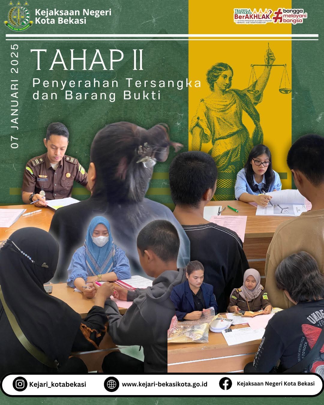Selasa 07 Januari 2025, Telah dilaksanakan kegiatan Tahap 2, yaitu penyerahan Tersangka dan Barang Bukti dari Penyidik Polres Metro Bekasi Kota, Polda Metro serta Polsek Medan Satria dengan perkara narkoba, penganiayaan, dan pidanan lainnya.