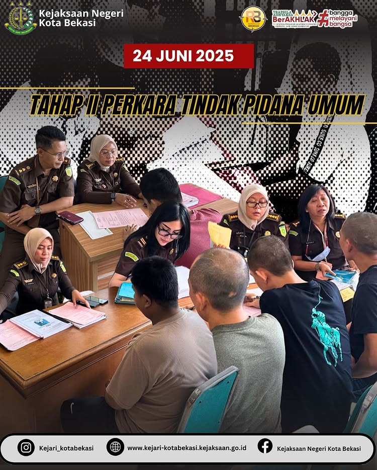 Selasa, 24 Juni 2025. Telah dilaksanakan kegiatan Tahap II, yaitu penyerahan Tersangka dan Barang Bukti dari penyidik Kepolisian Resor Metro Bekasi Kota kepada Kejaksaan Negeri Kota Bekasi.