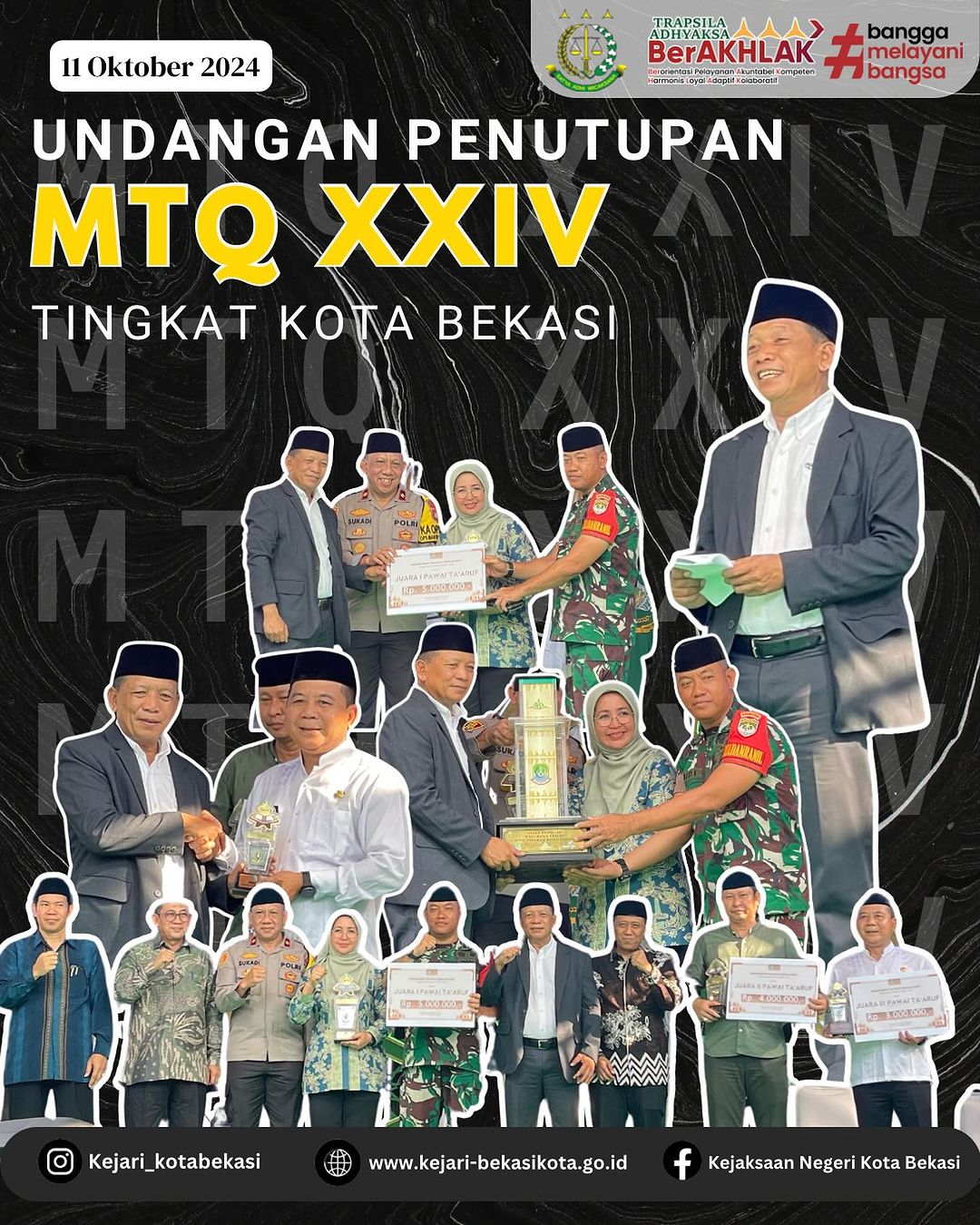 Jumat, 11 Oktober 2024. Penutupan MTQ XXVI Tingkat Kota Bekasi bertempat di Lapangan Multiguna Kota Bekasi