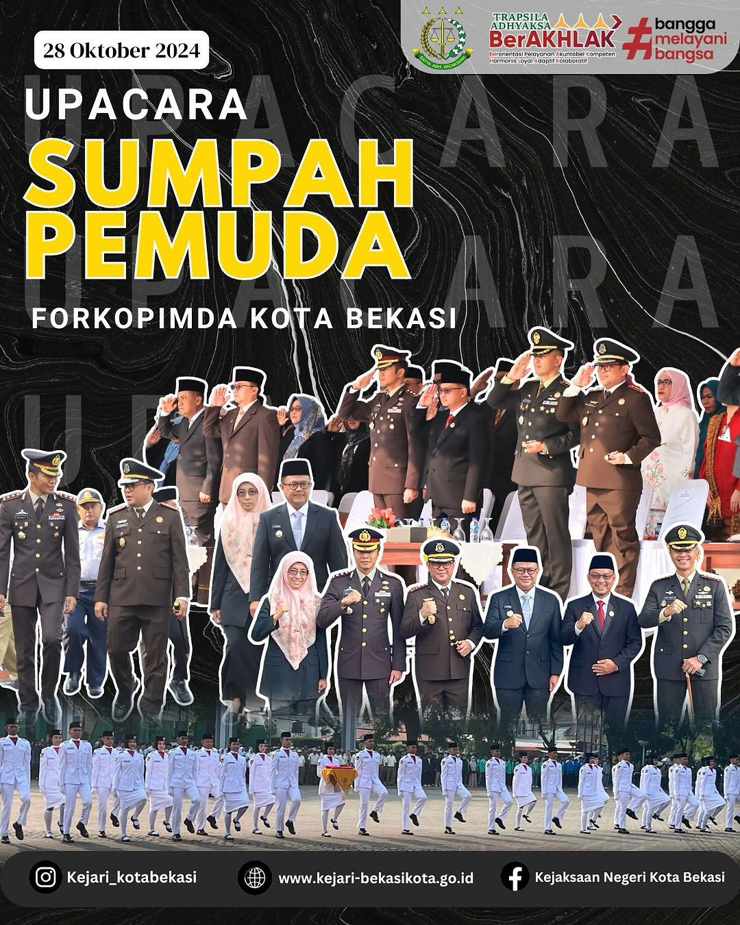 Senin, 28 Oktober 2024, Kepala Kejaksaan Negeri Kota Bekasi Imran Yusuf, S.H., M.H. mengikuti Upacara Peringatan Hari Sumpah Pemuda bersama Forkopimda Kota Bekasi yang dilaksanakan di Alun-alun Kota Bekasi.