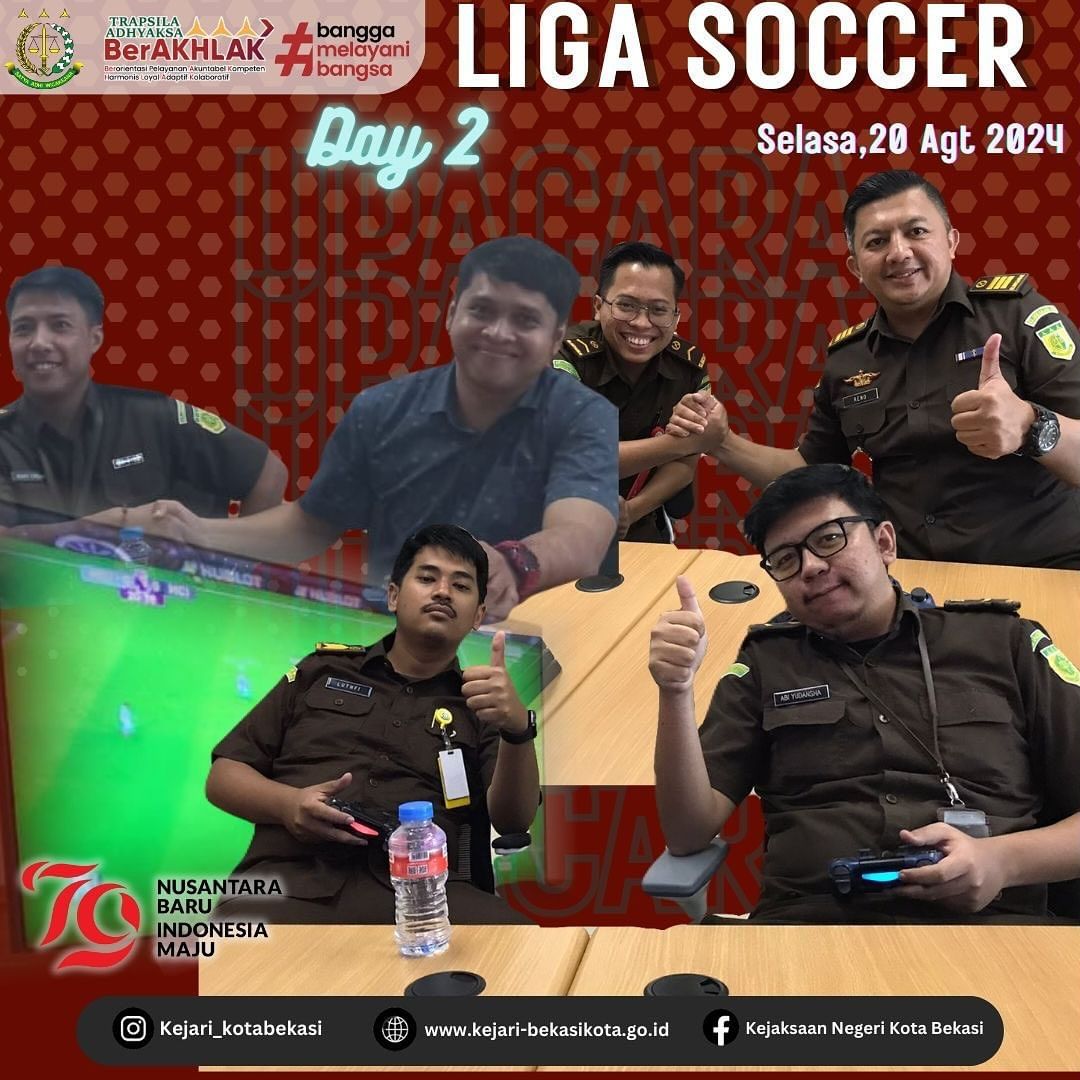Dalam rangka perayaan HUT RI – 79, Kejari Kota Bekasi mengadakan berbagai macam perlombaan salah satunya Liga Soccer Playstation. Selasa, 20 Agustus 2024 merupakan hari kedua dilaksanakannya perlombaan tersebut.